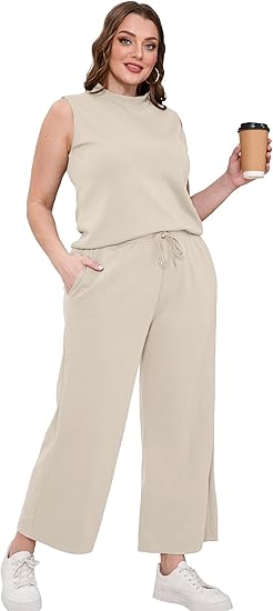 - Design:Two Piece Sets for Women Mock Neck Sleeveless Tops,Wide Leg Crop Pants,Cropped Length,Contoured Back for The Most Flattering Rear View,Elastic Drawstring