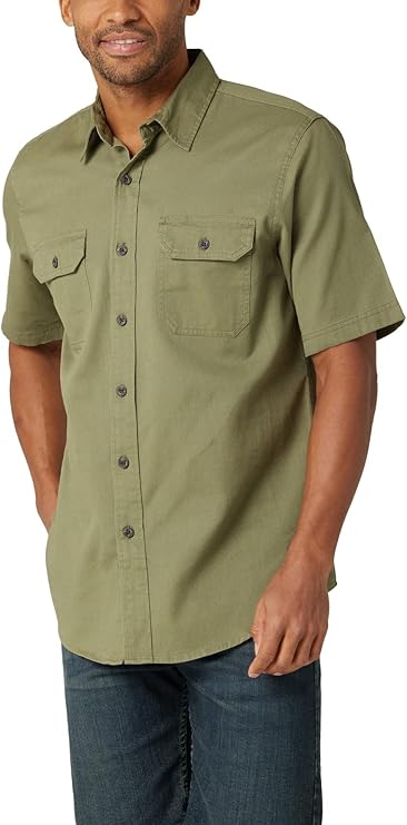 - Wrangler Men's Authentics Short Sleeve Classic Woven Shirt, Caviar, 2X